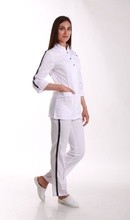 - жакет средней длины, застежка центральная на кнопках и пуговицах