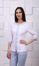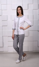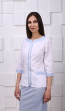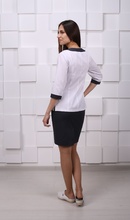 - на груди планка для бэйджа, горловина без воротника обработана отделочной планкой
