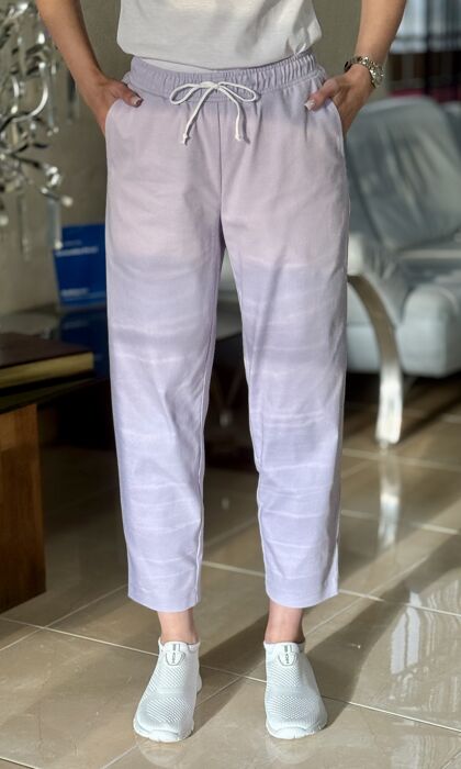 - сверху задних половина брюк отстрочена кокетка двойной отделочной строчкой