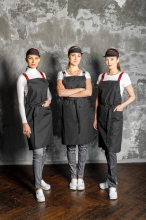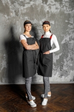 - фартук на завязках с нагрудником, прямой формы, удлинённый