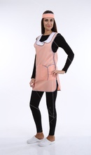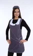 - полосатая окантовка по краю всего халата, овальный вырез горловины